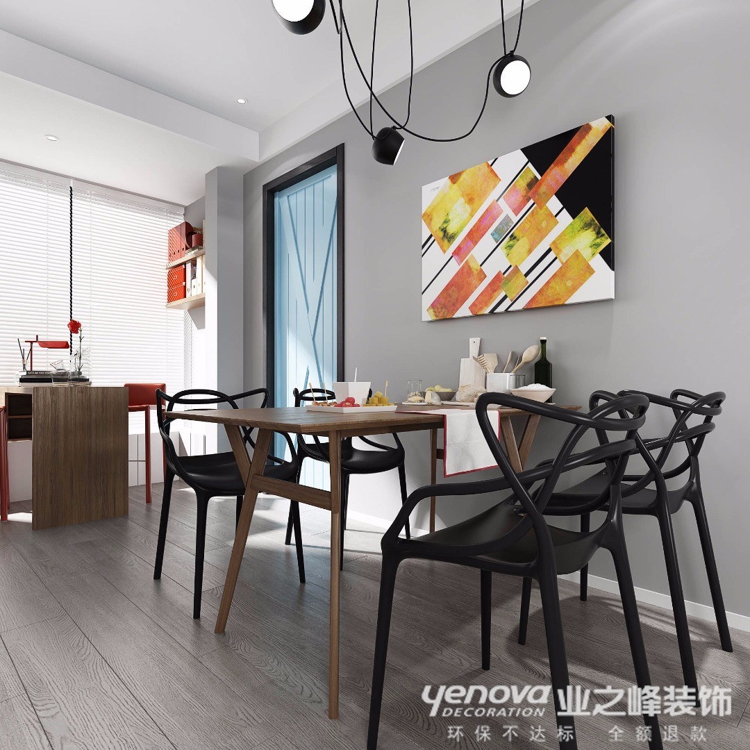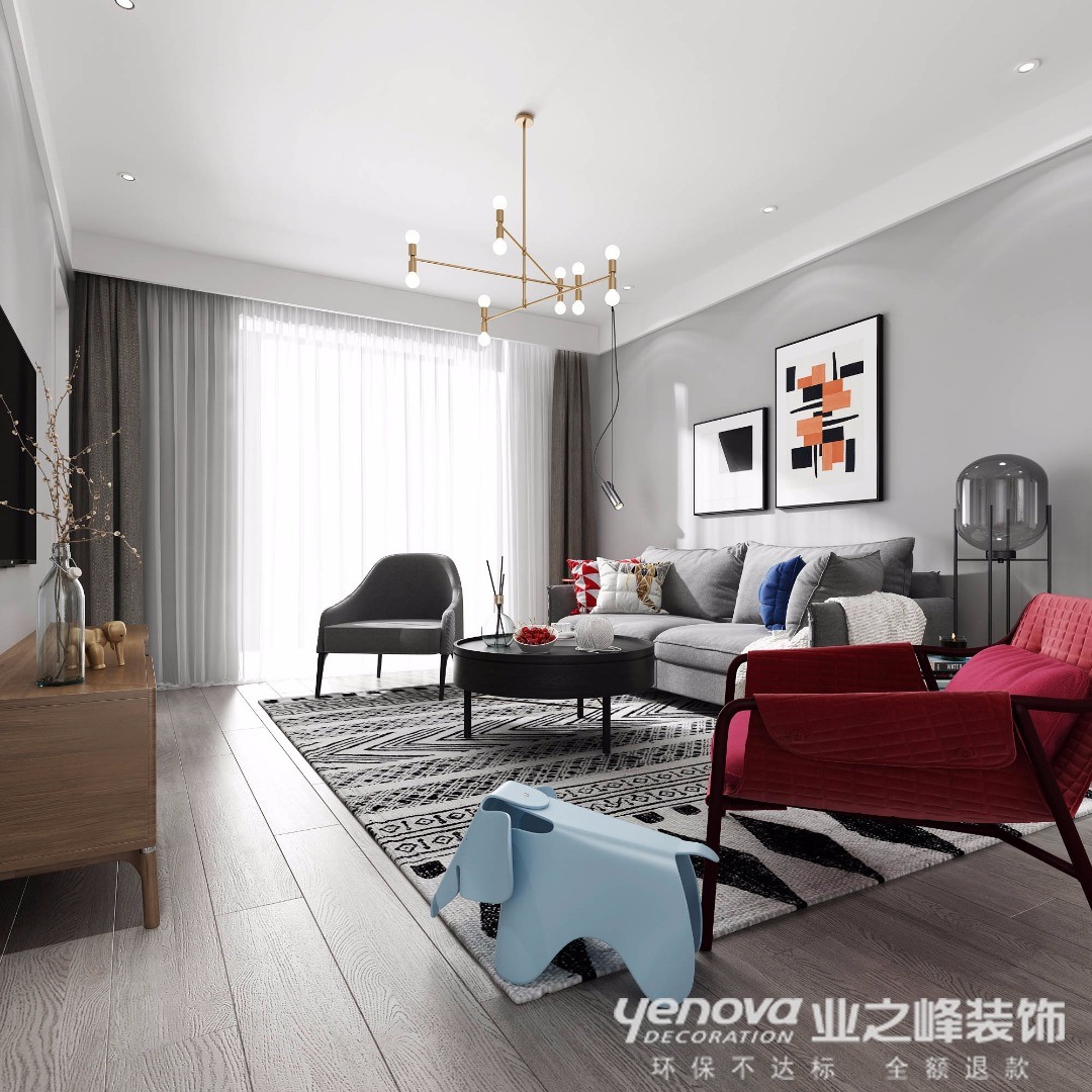 在结构上加大厨房面积满足主人对厨房的功能需求。高级灰作为主色调,单人沙发使用红色,点亮了整个空间,起到画龙点睛的作用。而木质电视柜满足收纳需求,又增加了整个空间的自然气息。简单而又浪漫!