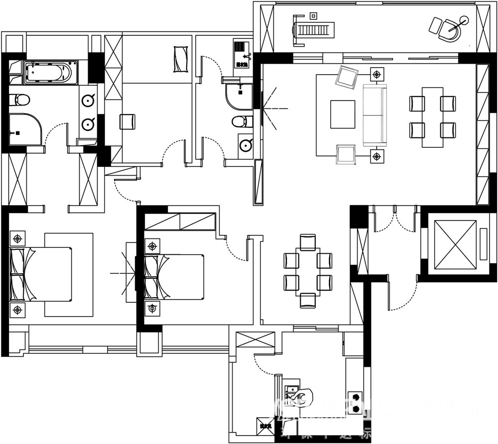 小区:绿地锦天府 面积:185㎡ 户型:三居 风格:现代简约风格
