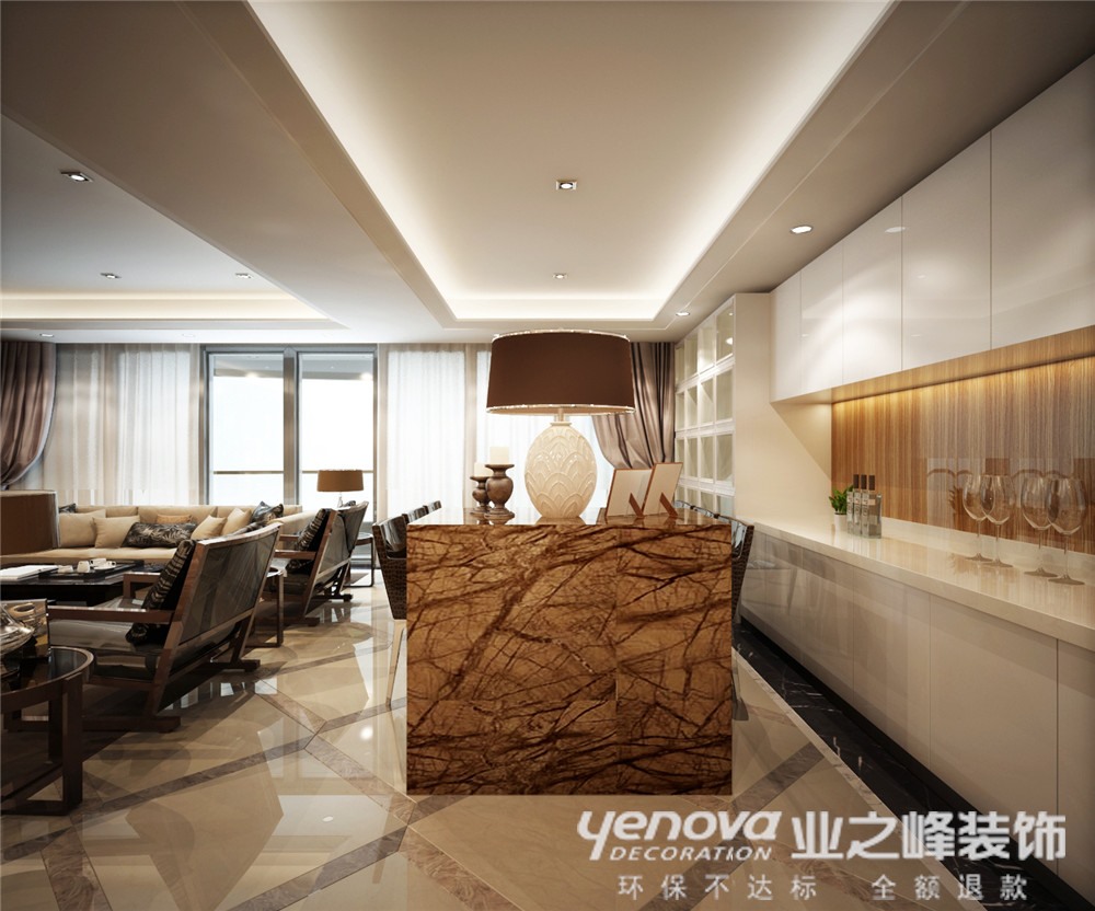 本案的形态与色调以稳重,简约且大气的格局为核心。客厅增加吧台的功能,让我们在忙碌之后有一个放松之地。看似不起眼的形态实则户型图