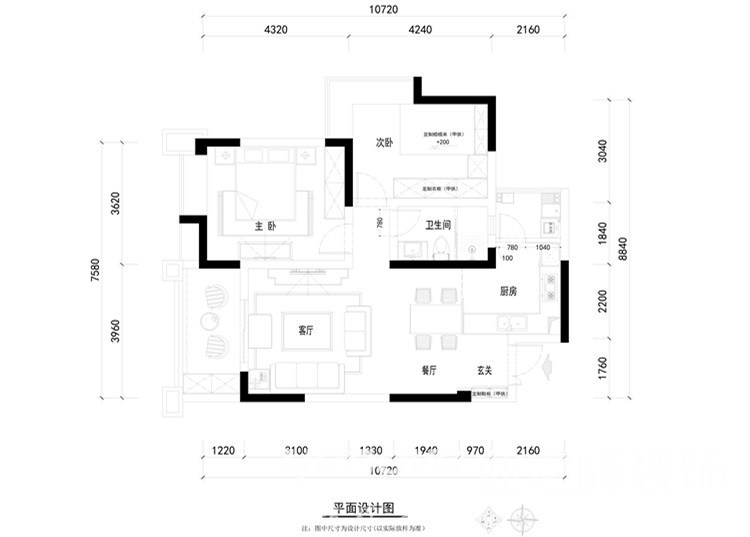 小区:桐梓林壹号 面积:88㎡ 户型:二居 风格:混搭风格