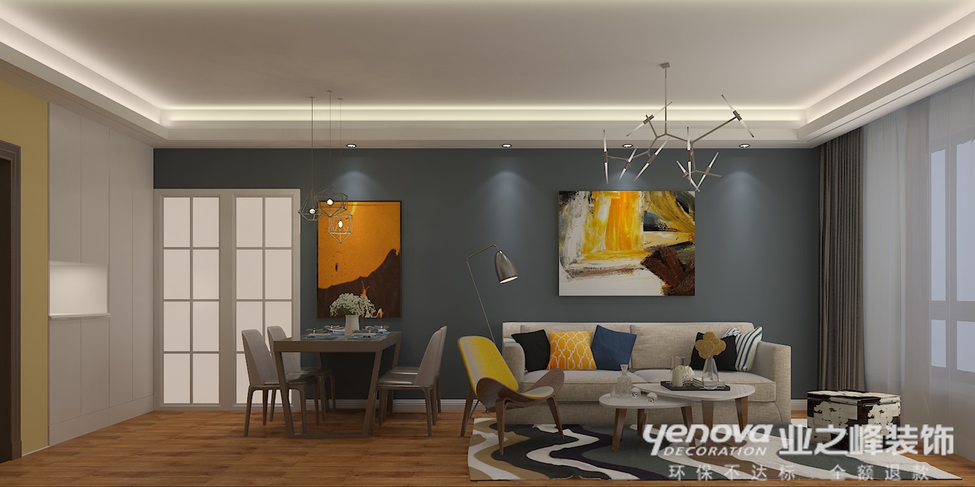 小区:融创中央学府 面积:90㎡ 户型:二居 风格:现代简约风格