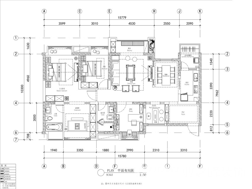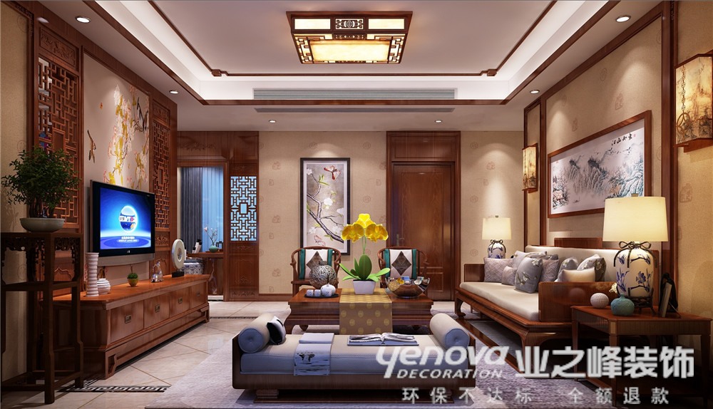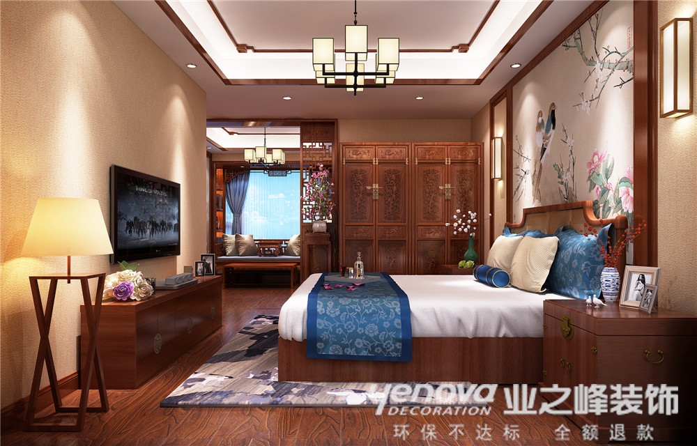 此设计方案的业主三口人,偶有亲朋,可做一主卧一次卧一书房一衣帽间的格局划分;风格倾向定位为京派中式风格,不要冗繁,中国红基调,色彩明快,可配红木、实木家具。居室中所出现的电器皆为紧跟时代潮流的产品,如3D云电视、中央净水系统、中央空调、环绕立体音响等。本案的设计重点是主卧与主卧衣帽间的衔接上,考虑房间面积小空间划分较碎,通过利用软性隔断将主卧与衣帽间结合将空间整合。经典、沉稳在本案中得到了淋漓尽致的体现。