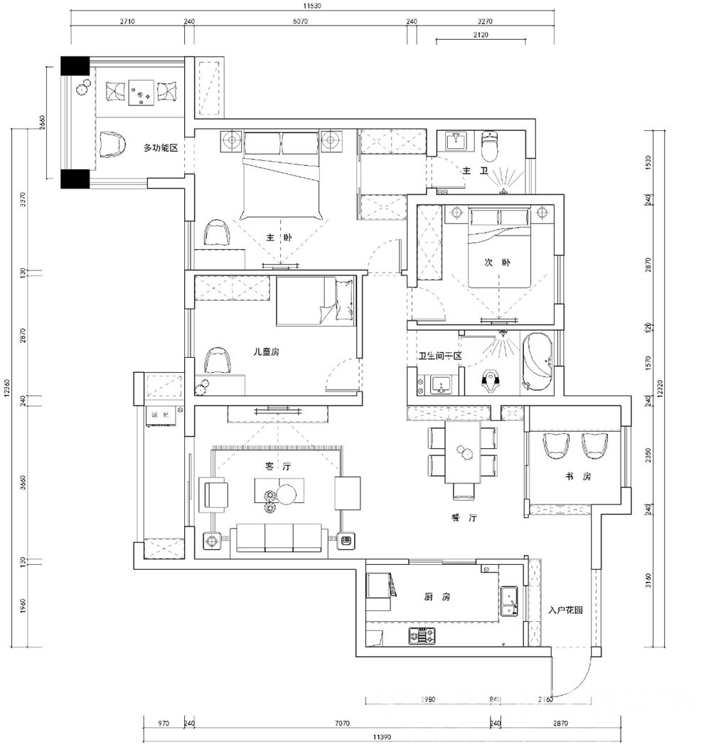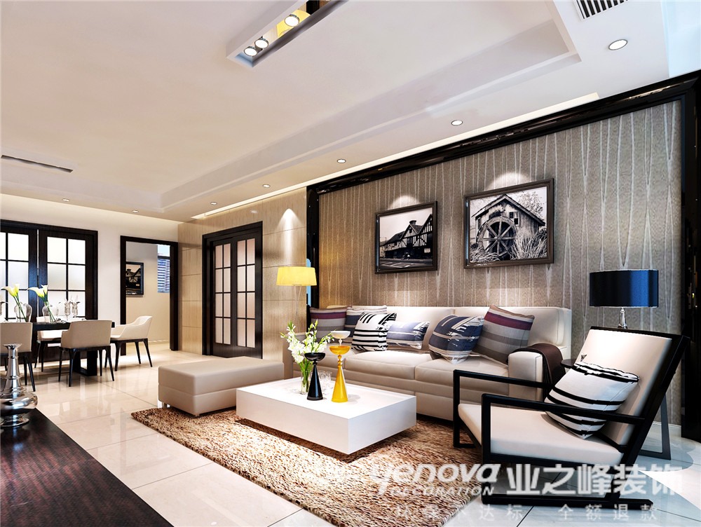 本案是经典的现代黑白灰,在保留经典现代简洁元素的同时,在灯光、墙纸和软装的选择上弱化材质冰冷的感觉,吊顶以功能化为主,同时用明装斗胆灯来代替传统主灯,为空间融入了独特的个性。
