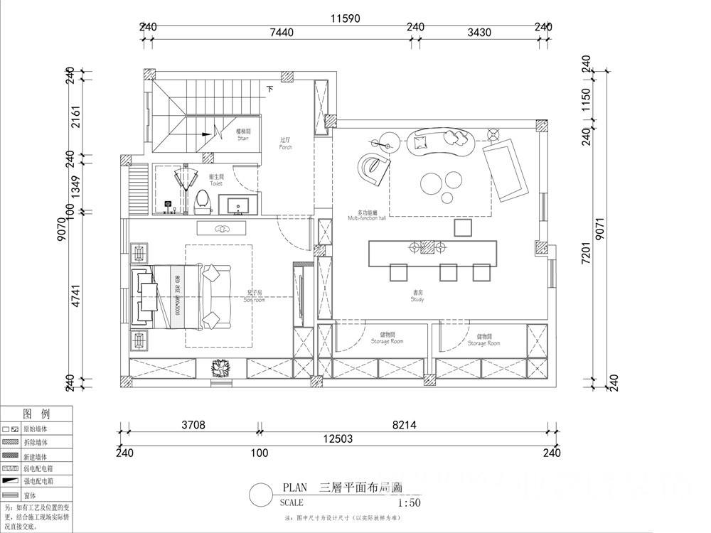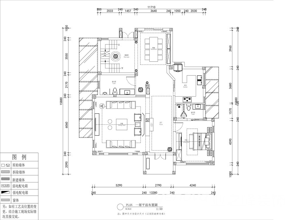 此设计方案的业主是同父母、儿女居住,需要完整的娱乐空间,喜欢喝茶,注重设计;风格定位为简约中式,造型一定要简约、时尚。在空间布局上,紧靠着科学的设计原则,保持最大限度的利用好自然的采光,通风,同时照顾人在空间中的生活习性。居室中所出现的电器皆为紧跟时代潮流的产品,如3D云电视、中央净水系统、中央空调、环绕立体音响等。设计重点在于客餐厅的衔接上,融合中式构成元素,在保证基本功能实用性基础上,以简洁的线条表现形式美,传达主人的生活文化背景。
