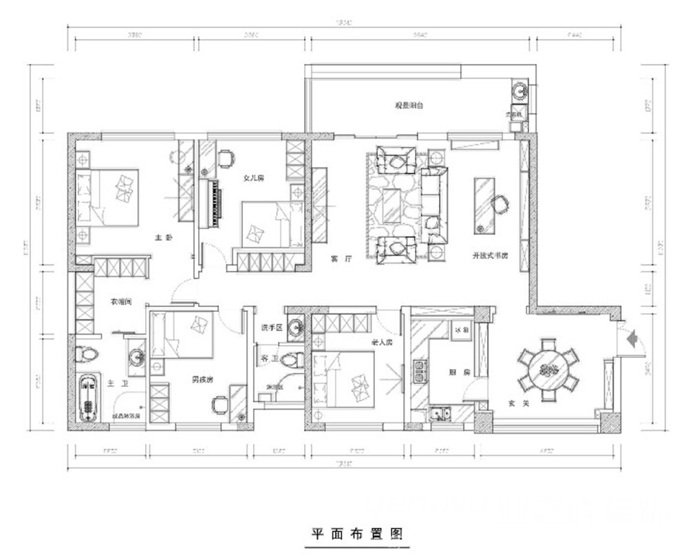小区:长城半岛城邦 面积:150㎡ 户型:四居 风格:美式风格