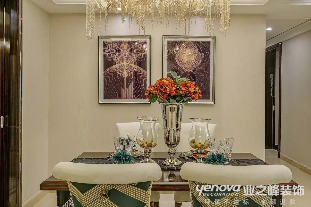 餐厅虽然区域不是很大,但是在顶面进行了分割,把空间区别开,采用碳钢条的垭口套,再在这个区域用非常有设计感的软装进行比例的搭配。