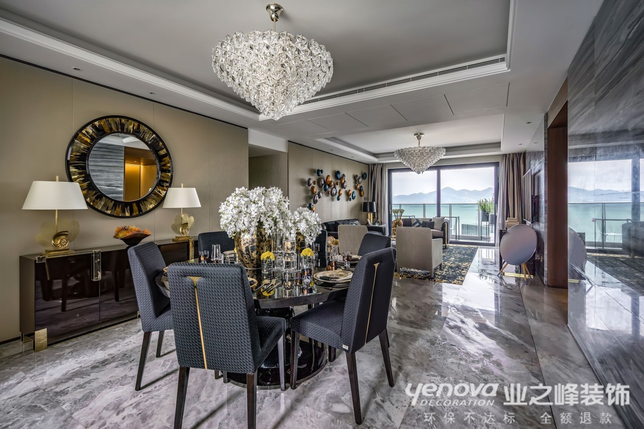 客餐厅是最能体现给客人看,并且展示他独有的品味的区域,所以地面统一的采用仿大理石地砖,和顶面的白色是百搭的色调,墙面可以用硬包大面积的展示出家的温馨,再配以独特的软装家居。