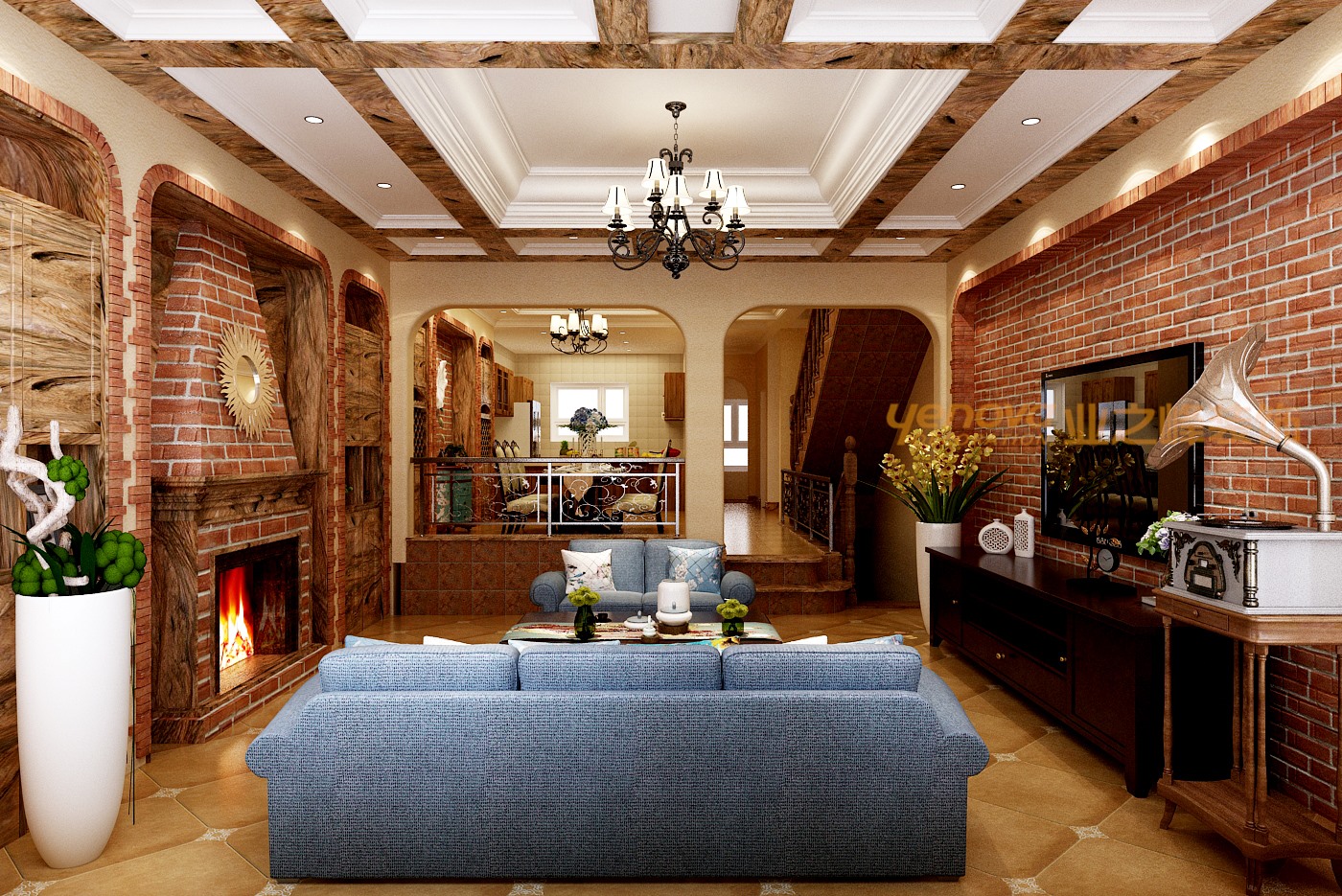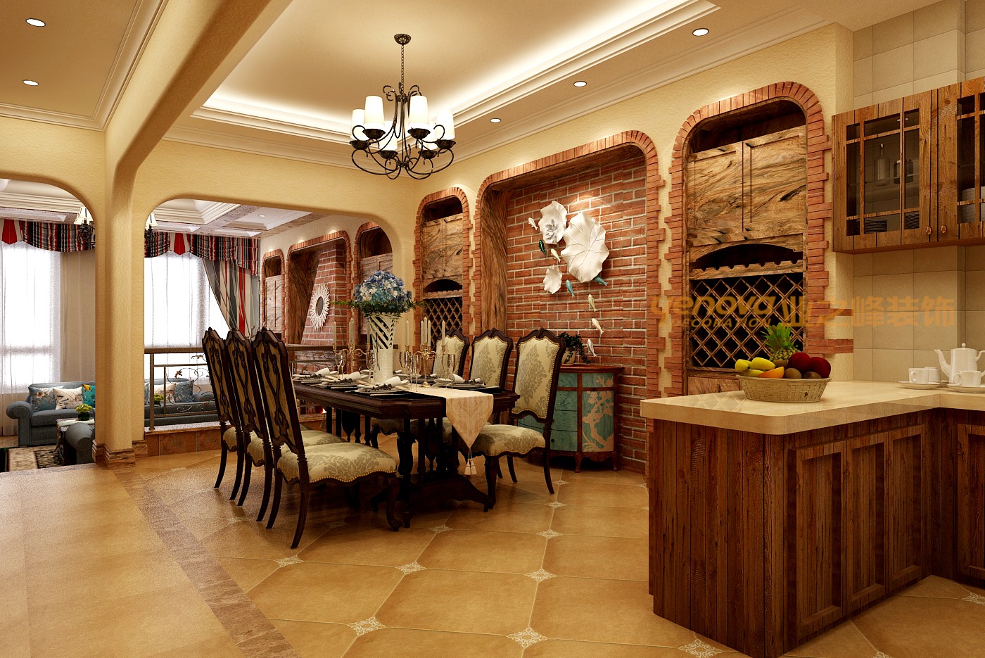 在繁华现代的都市家里,带入乡村风格的软装饰,回归生活舒适自然地本真,提现没事乡村的朴实风味。本案业主是位“收藏家”,特别喜欢复古的物件,迫求原生态的生活。整个居室大量采用红砖造型,以及大纹理做旧的大木材,透着粗犷自然的品道,却毫不矫情。