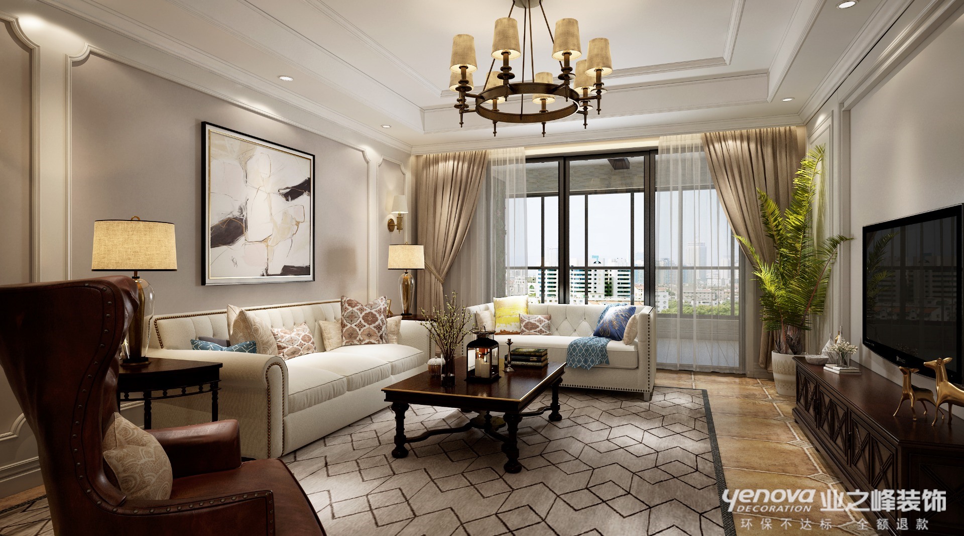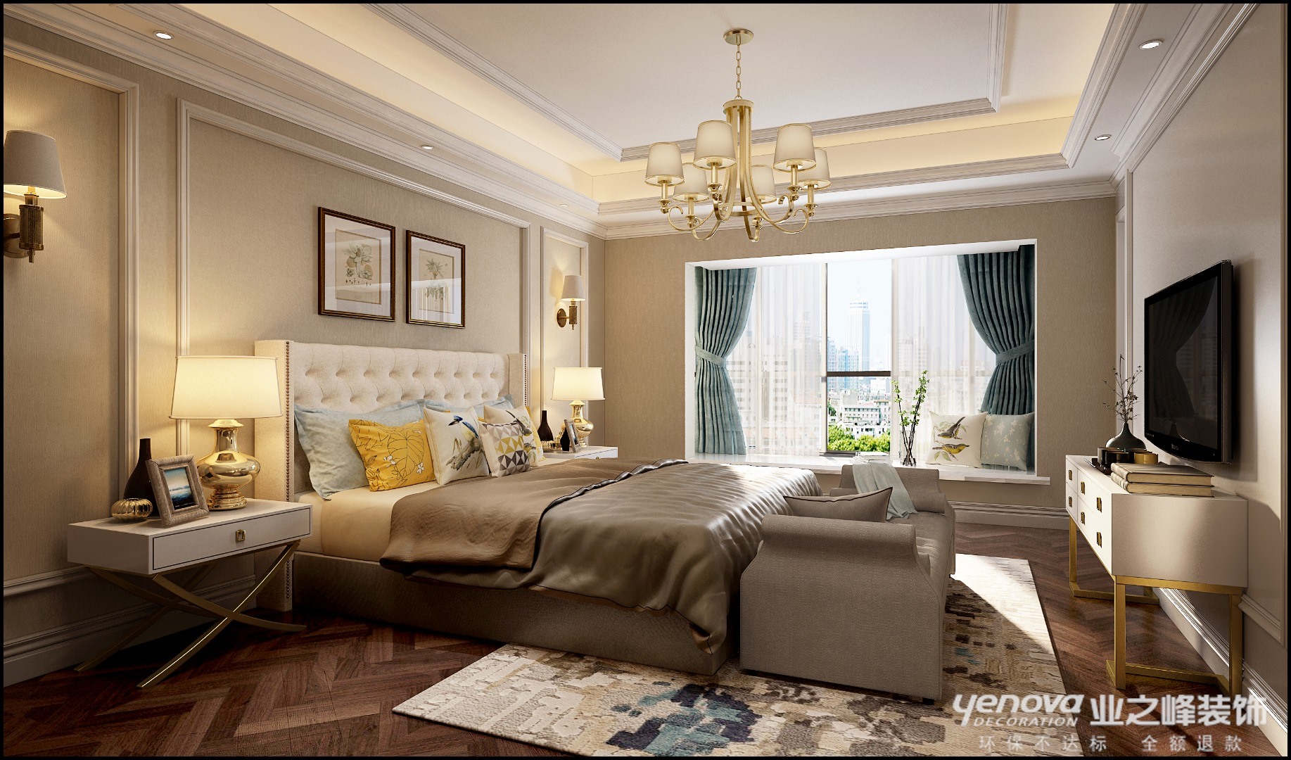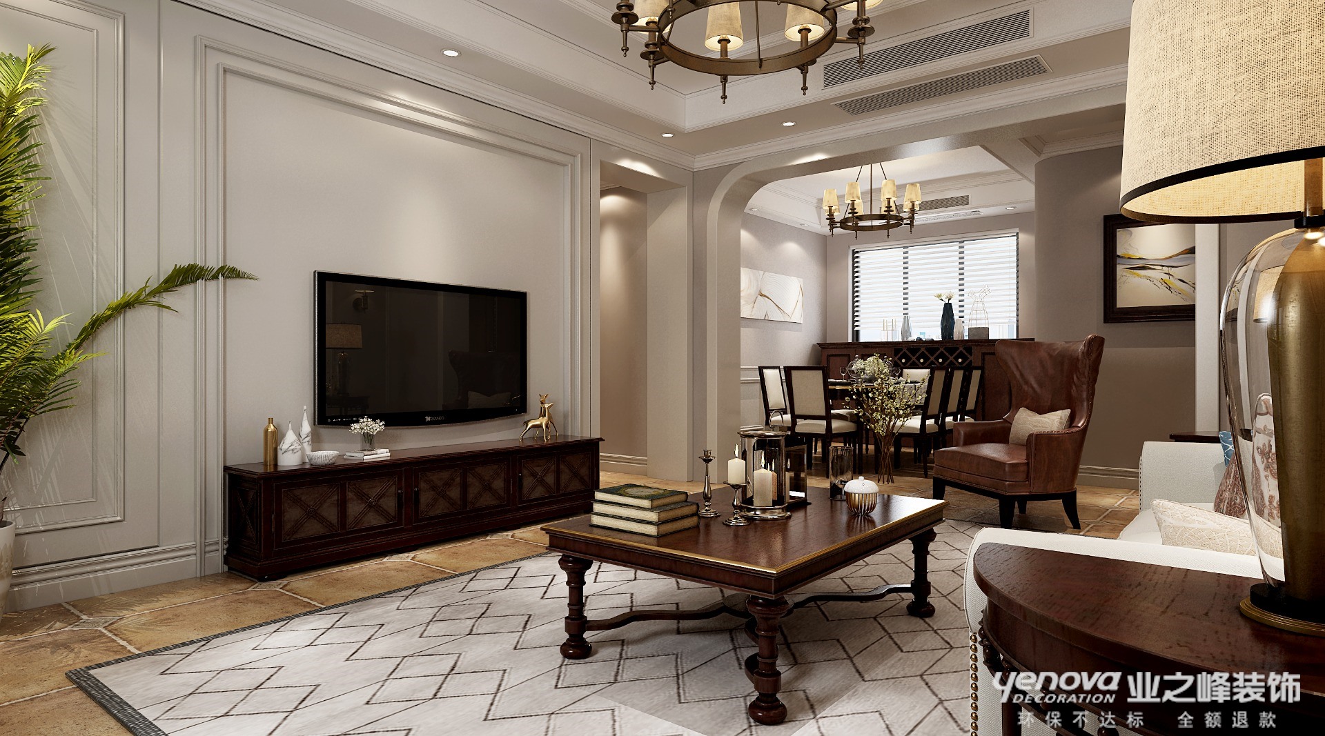 美式风格里面有很多细节硬伤,很多地方的弧形门洞考虑的是导成圆弧形之后直接刷乳胶漆,如果弧度不够大,那么时间长了很容易蹭坏或者发黑。所以在本案中,我们都采用了装饰材料护角,既能保证美式风格元素,又能保证之后的日常维护保养,经得住时间考验。细节设计考虑是空间设计最重要的。