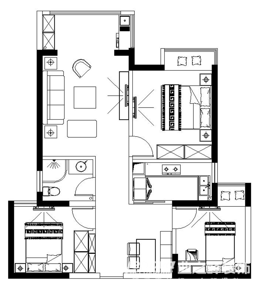小区:中骏蓝湾香郡 面积:90㎡ 户型:三居 风格:现代简约风格