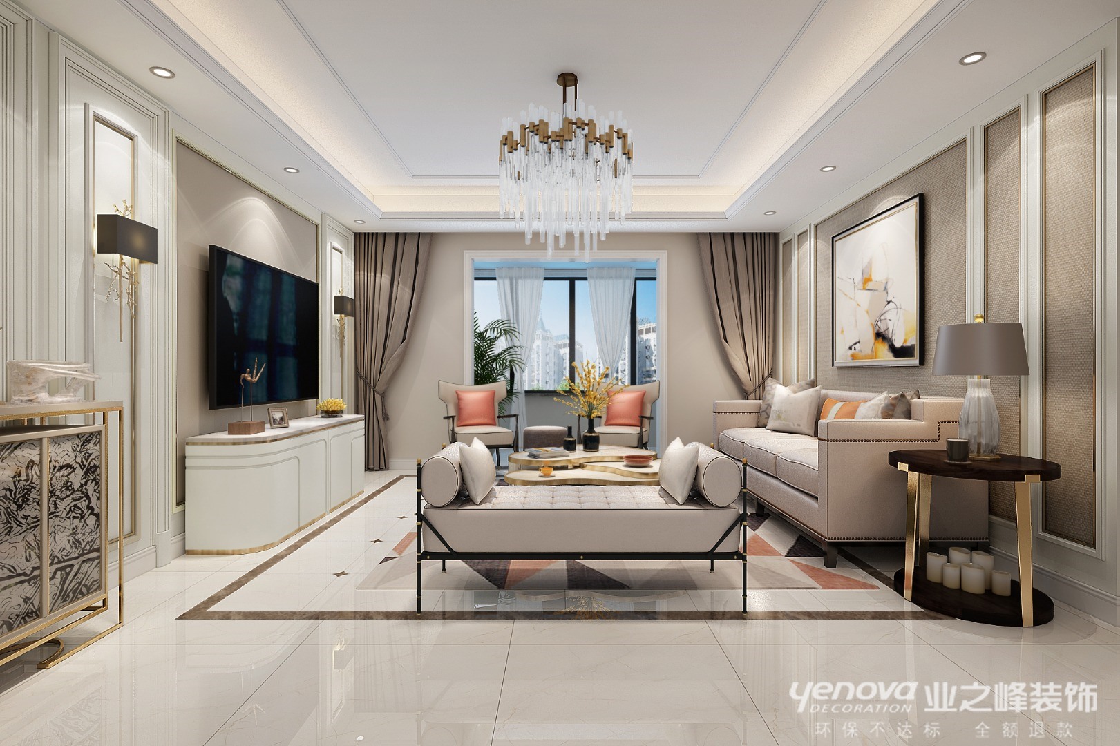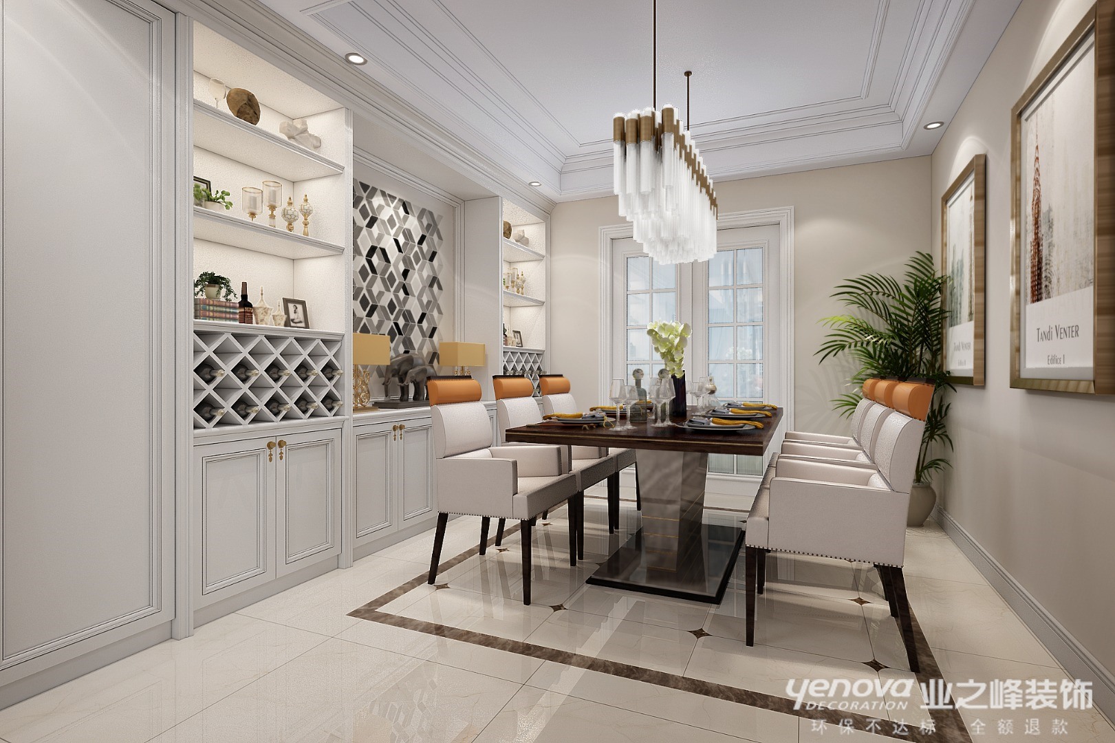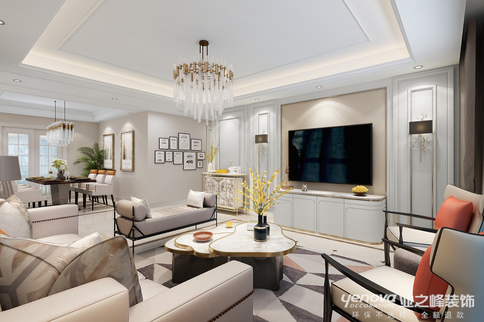 在设计中抛弃了欧式风格的线条复杂、色彩低沉,而在欧式风格的基础上,以简约的线条代替复杂的花纹,采用更为明快清新的颜色,既保留了欧式的典雅与豪华,又更适应现代生活的休闲与舒适。