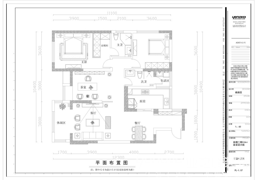 小区:紫檀轩 面积:110㎡ 户型:三居 风格: