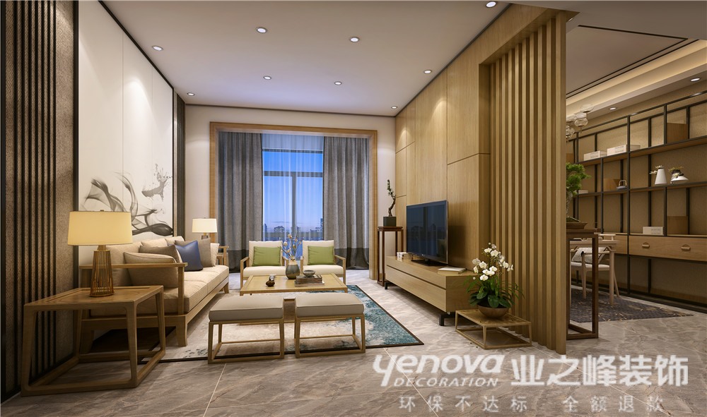 本方案在整体设计上主要是以现代中式的装饰手法,现代中式是一种传承了中国古典园林的基本元素和造物手法,又融入了现代简约的几何图案及线条的设计风格,更加符合当代人的审美情趣和生活习惯。墙面上我们主要以大面积硅藻泥的颗粒质感来体现出原生态的气息辅以原木色护墙板及金属线条来营造出现代的氛围。顶面设计上采用了大面积平顶与黑色金属线条相结合在保留房间自身层高基础上,更加突出了他房间自身的优势,层次更加分明,给人一种看似简单却又不失华丽的错觉。地面上采用了大面积亚光乱纹地砖似营造出一种古典园林小道的韵味。