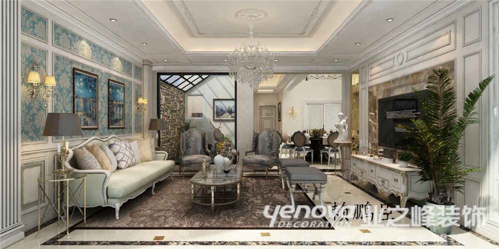 本方案在整体设计上 此房面积349.5平米平层,客户对于欧式设计风格尤为喜欢。欧式在设计上讲精益求精,给人一种金碧辉煌气息。我们把一些精细的后期配饰融入设计风格之中,充分体现设计师和业主所追求的一种高品质、舒适的生活氛围。在本套设计中我们在墙面上主要采用土黄色的淡花纹机理墙纸,凸显出了和色深木质墙裙,并在客厅电