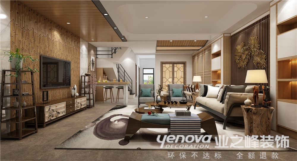 本方案在整体设计上主要是以民宿中式的装饰手法,整个空间层次分明,整体明亮、大气又不缺乏温馨与时尚。中式设计注重整体,我们在方案设计中并没有过多的去强调浮夸的造型而是在强调材料本身的自然美,用简单的手法来呈现出不一样的简约美,使整个空间浑然一体,各个细节收尾呼应。墙面上我们主要以原生态的竹子来突出大自然的气息,顶面设计上采用了大面积平顶与木质墙板相结合在保留房间自身层高基础上,更加突出了他房间自身的优势,层次更加分明,给人一种看似简单却又不失华丽的错觉。地面上采用了大面积深色仿古砖看似就像乡间小道的泥泞小路使我们的设计更加贴近自然。