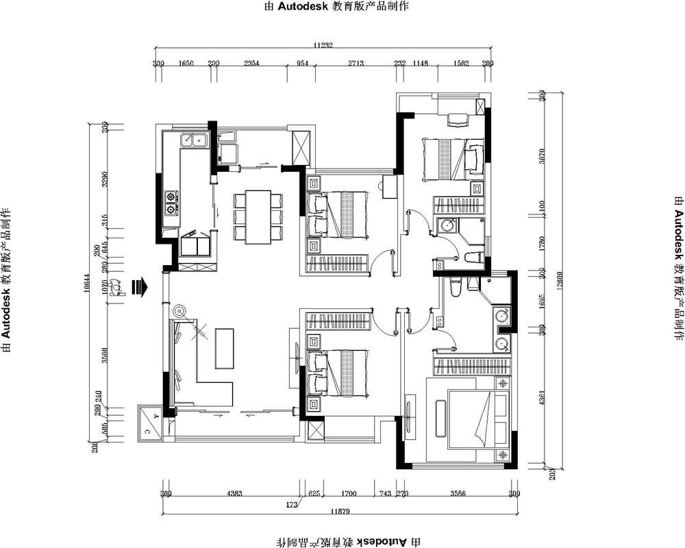 小区:中粮锦云 面积:113㎡ 户型:四居 风格:简欧风格