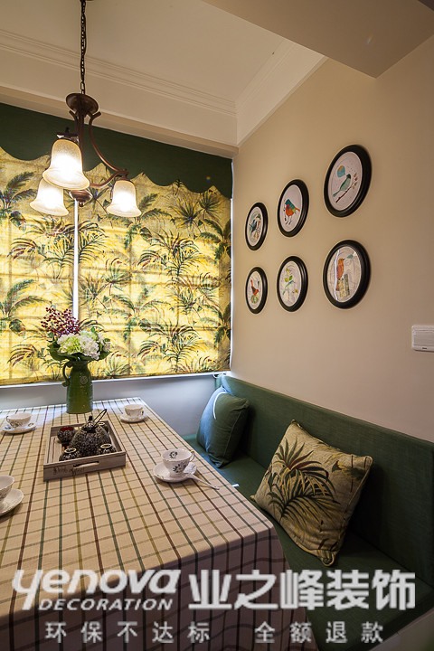 客餐厅:空间相对较小,通过设计让客餐厅在空间上融为一体,浅色布艺沙发,木制家具搭配一株绿色植物,传递着简洁,舒适的气息,在淡黄色光线的映衬下,呈现出浪漫的韵味。明亮的光线再窗户照进室内,让客餐厅显的更宽敞大气。