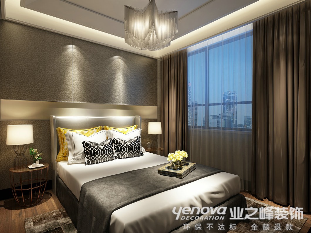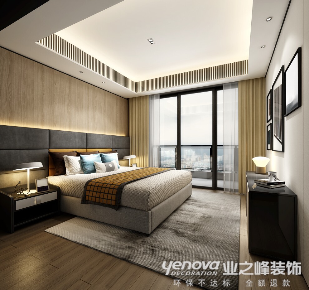 卧室作为主人的私密空间,主要以功能性和实用舒适为考虑的重点,墙面用了素色护墙板及床头深灰色软包,浅色的软装搭配在整个空间起到了点缀作用,现代简约的卧室给人以心灵归属的感觉。