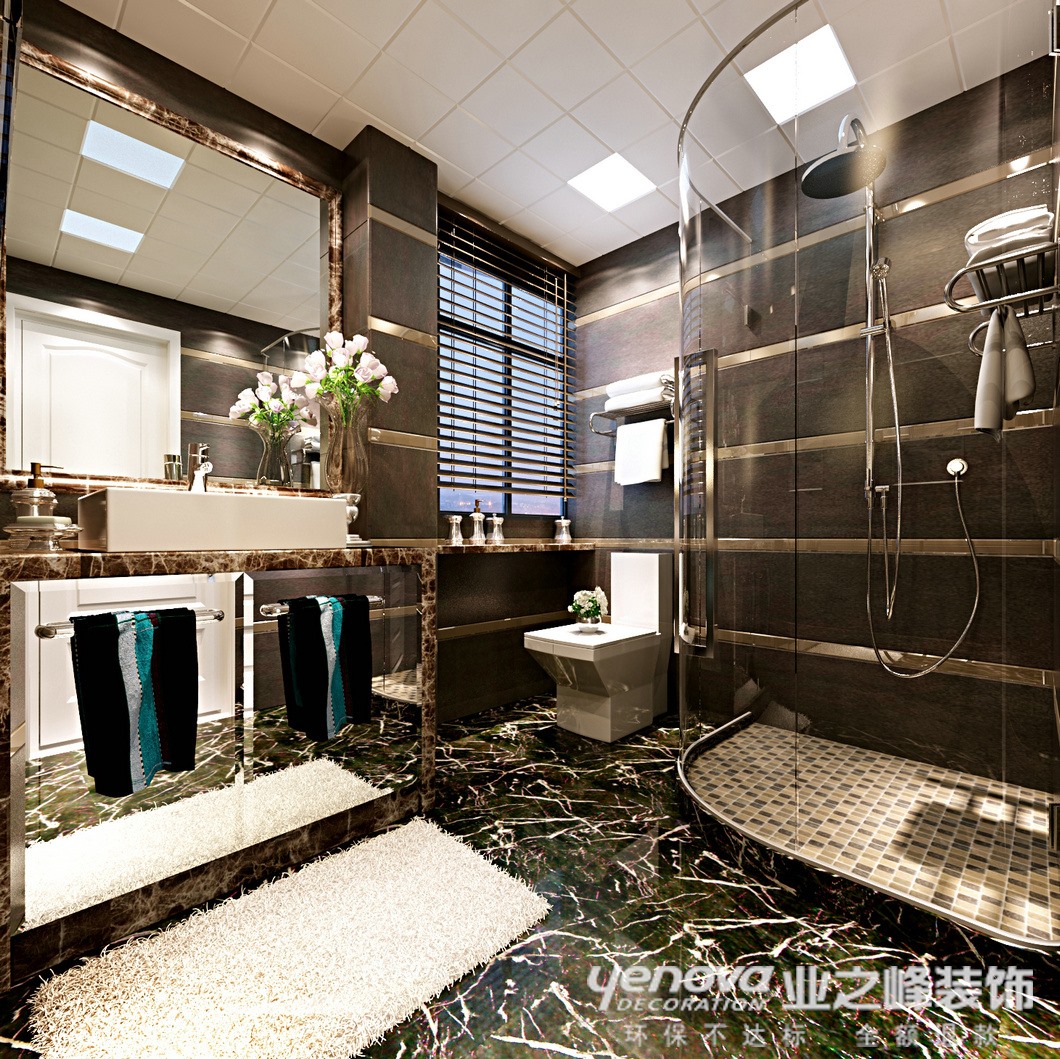 卫生间是我们日常生活中必不可少的功能区,在其设计上一定要注意卫生间的实用性,并且要合理巧妙地利用有限的空间,淋浴区的玻璃隔断完美起到了干湿分离的作用,定制的咖啡色大理石台面与地面的曜石黑地砖纹理上下呼应,给空间无形中提升了档次。