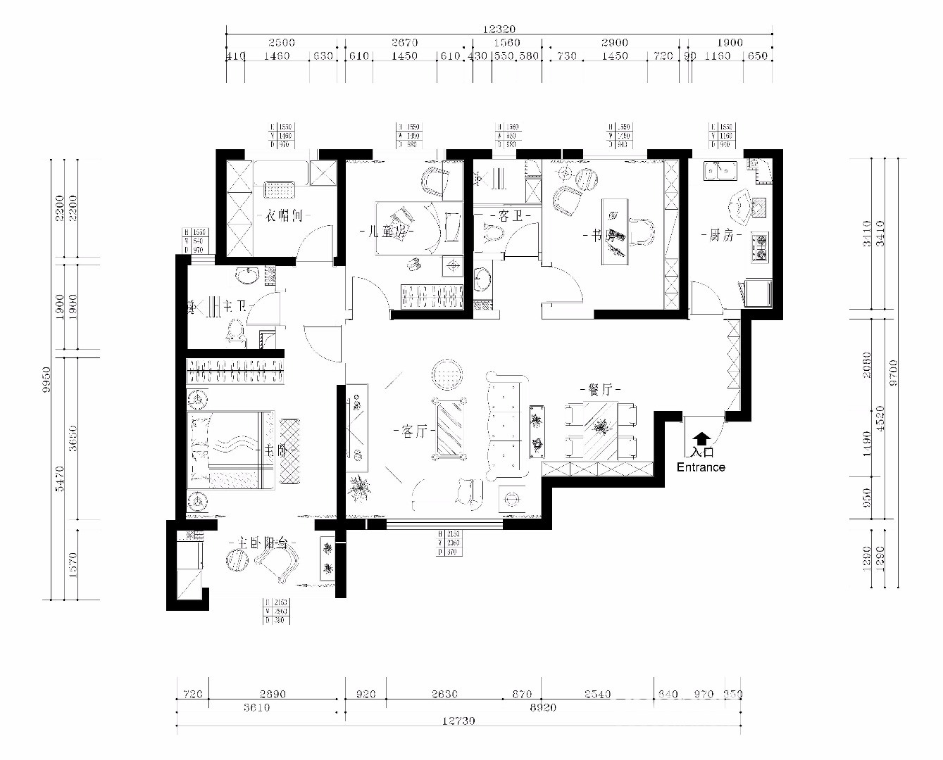 空间的规划很不合理,需要重新规划。客餐厅及过道的区域划分不够分明,