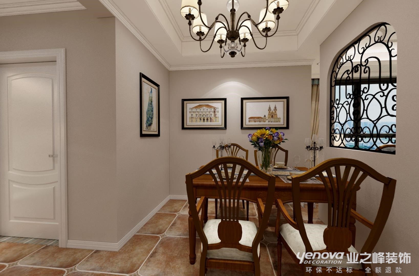在餐厅区域简单清新,没有多余的装饰。令人在就餐时安心舒适,镂空隔断巧妙的成为了沙发墙.使空间隔而不断,空间相对独立又连贯而又统一。