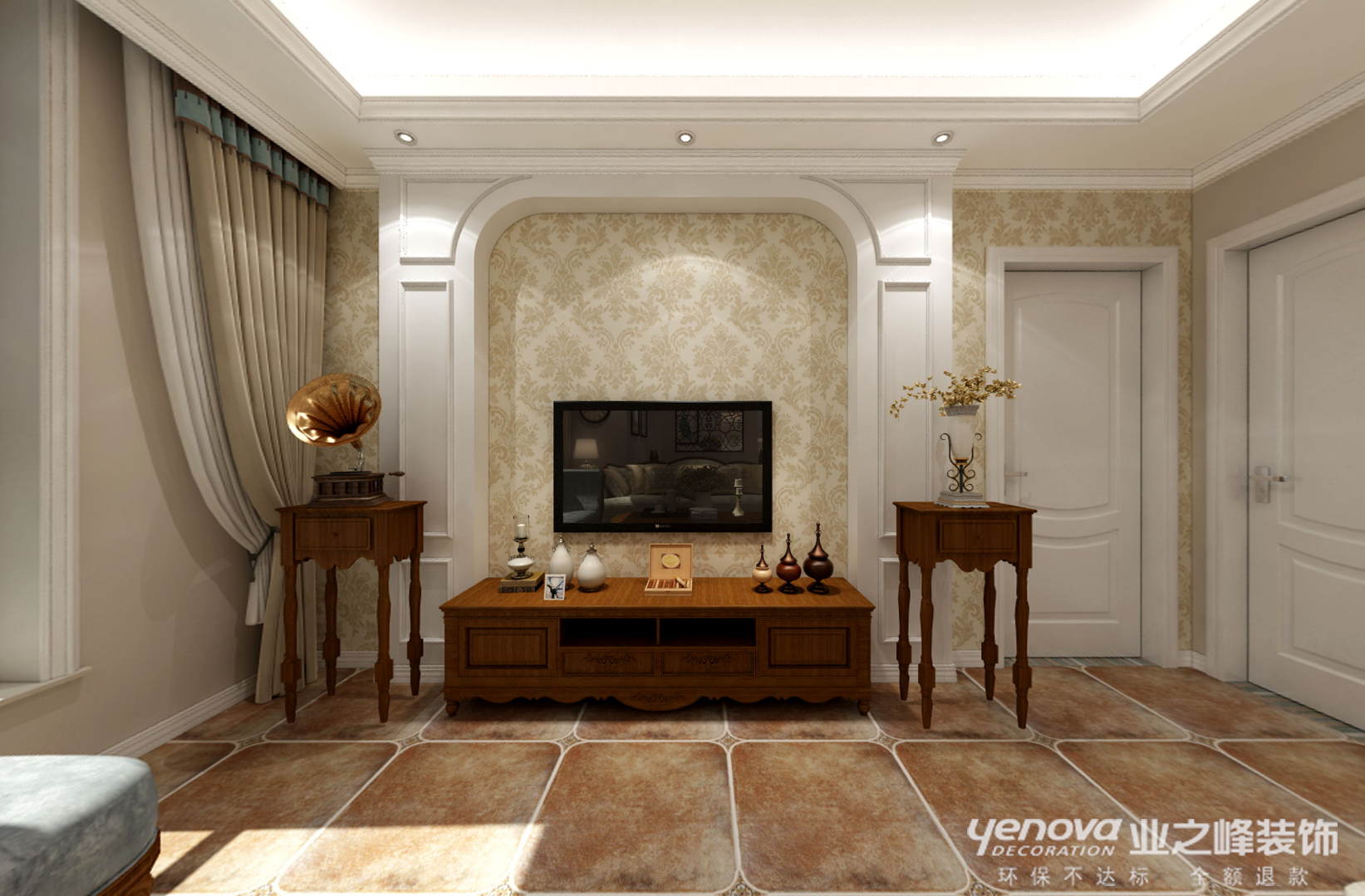 客厅作为家里的公共空间,和会客空间。暖色的墙面搭配经典的美式家具,稳重中透出慵懒。