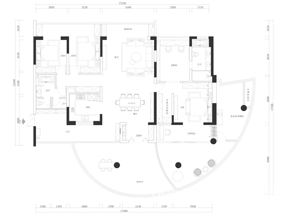 小区:世纪城天鹅湖 面积:210㎡ 户型:四居 风格:混搭风格