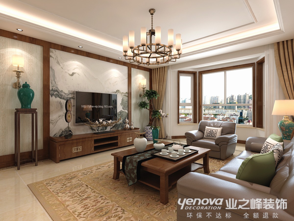 小区:碧景园 面积:121㎡ 户型:三居 风格:新中式风格