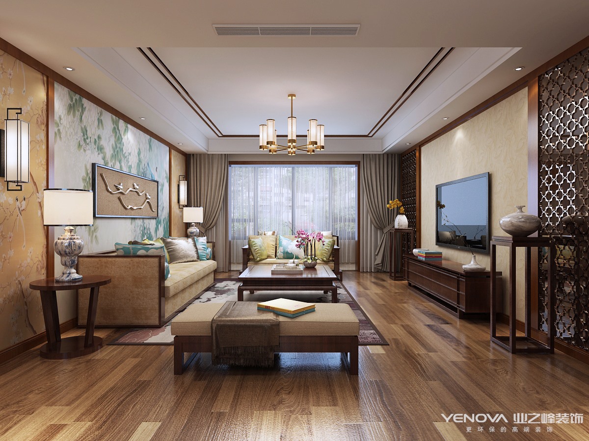 110㎡三居新中式风格泰林·黄河馨苑