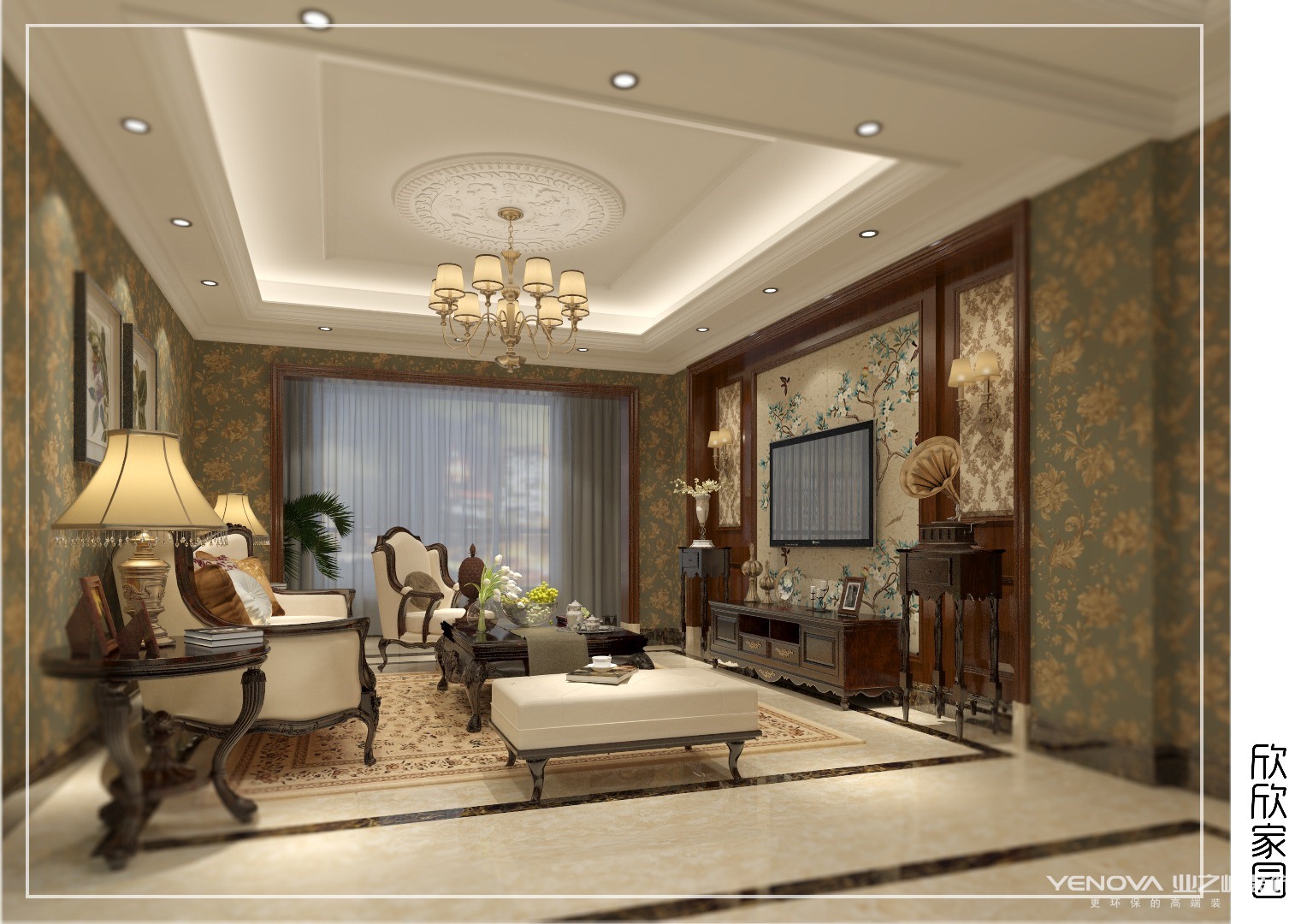 业主是年龄相对成熟的中产阶级,期望通过比较纯正的美式风格来体现自身的生活格调。因墙体基本均为剪力结构墙,故无较大的空间改动。仅在门厅位置做适当调整,布置了玄关隔断,弱化长过道的空间空洞感。整屋的壁纸的运用、充分提升室内装饰的质感。胡桃木色的背景墙低调而又不失格调的提升居住环境的品质。整体色调统一,空间布局舒适。