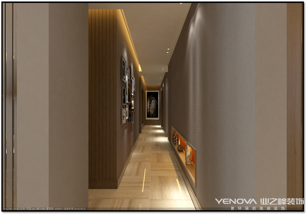 本案面积为280平平层,长条形的过道成为设计的难点,做不好就会形成枯燥乏味的区域,所以在设计时采取了错位的手法,将卧室门后撤,形成一个接一个的微型门厅,打破了墙面的规律,墙面上也开凿了几个有趣的壁龛,放入艺术品,既拜托了枯燥感,又使得过道成为一个有乐趣的区域。