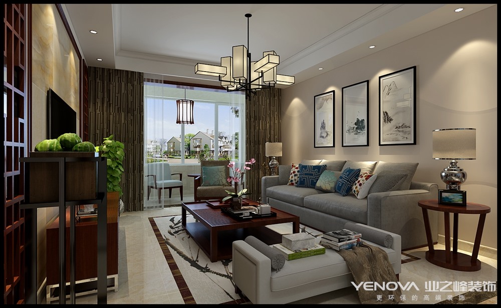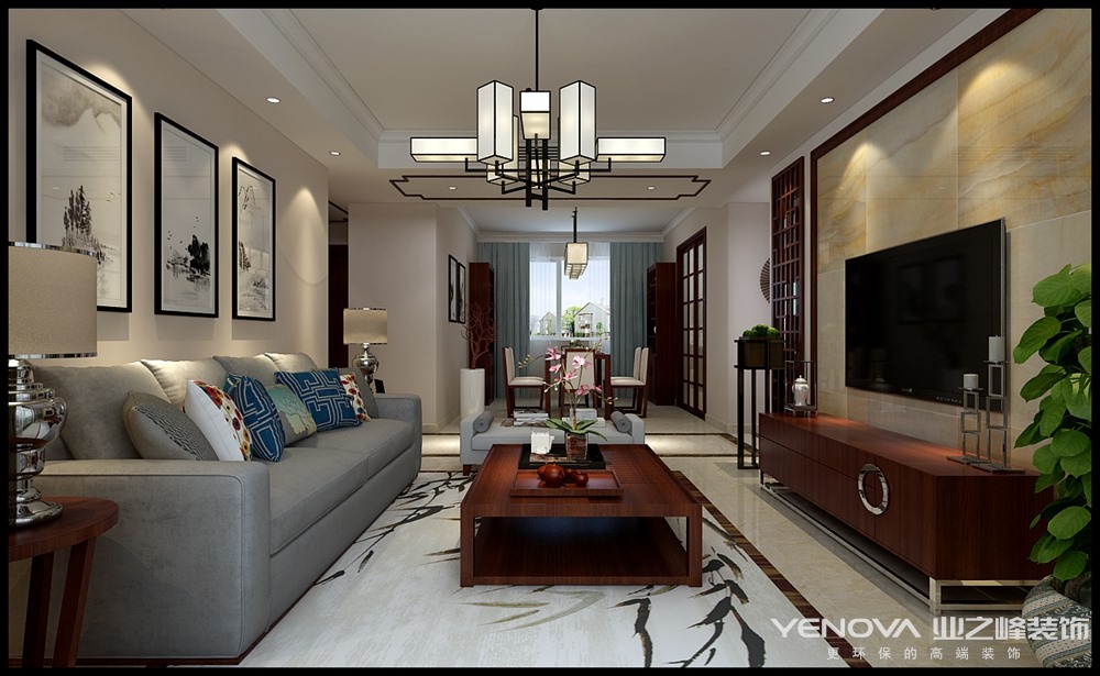 130㎡三居新中式风格百俪湾