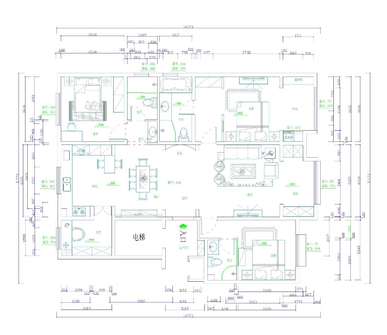 小区:绿地海珀天沅 面积:200㎡ 户型:四居 风格:美式风格