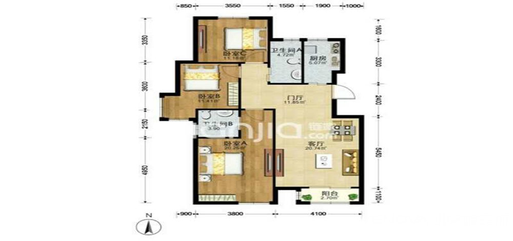 小区:格调林泉 面积:129㎡ 户型:三居 风格:美式风格