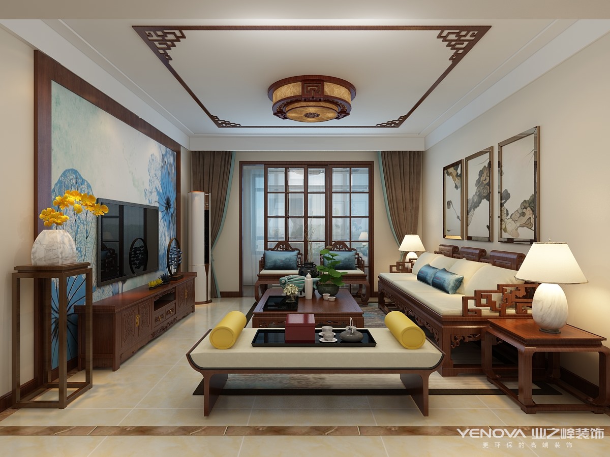 小区:鲁能领秀城 面积:138㎡ 户型:三居 风格:新中式风格