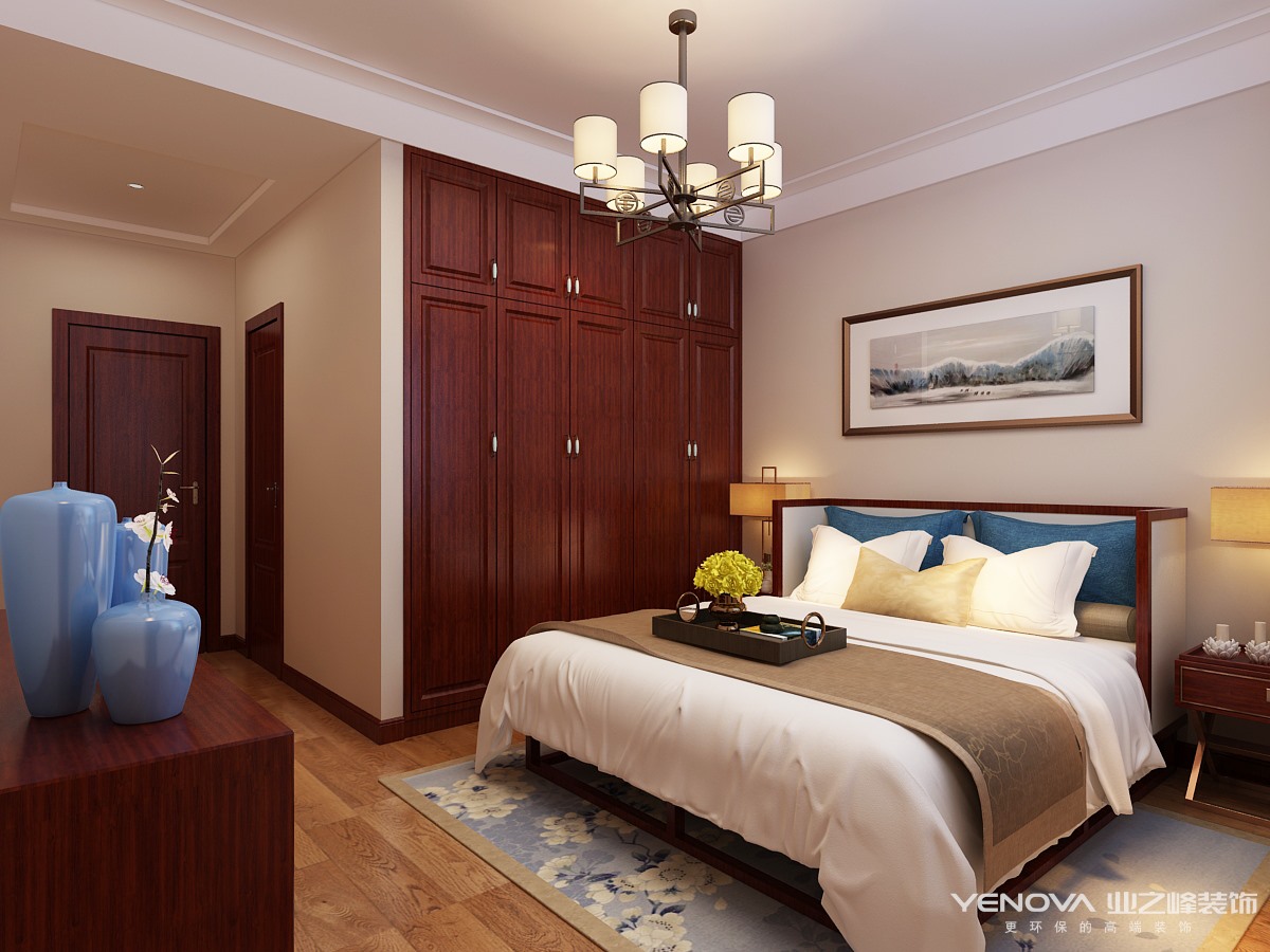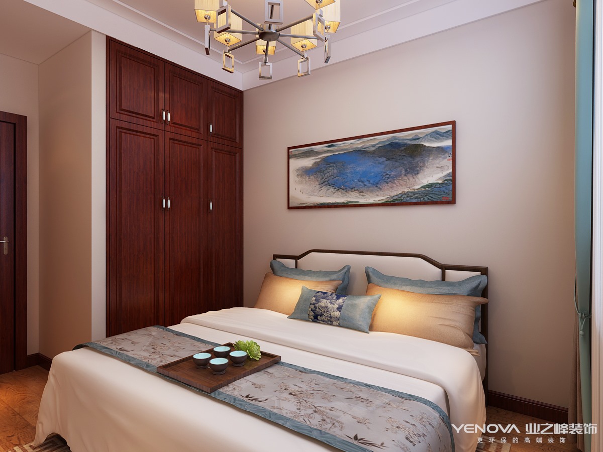 卧室:卧室床头的水墨画一笔体现新中式的意境,简单而富有表现力