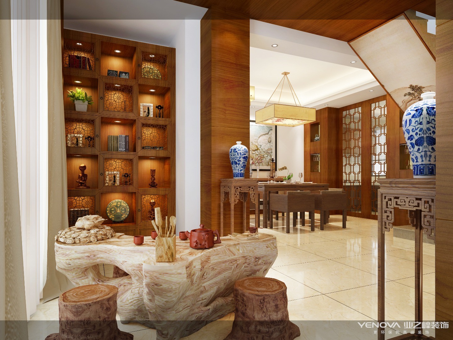 本案设计风格为中式风格,在案例中运用中式元素进行装点,中式线条、中式装饰饰面材质、中式地砖,以及搭配一些中式的家具和中式的装饰品,通过硬装和软装以及基础造型的合理搭配营造出成熟稳重、简洁大方又不失中式的韵味的氛围。