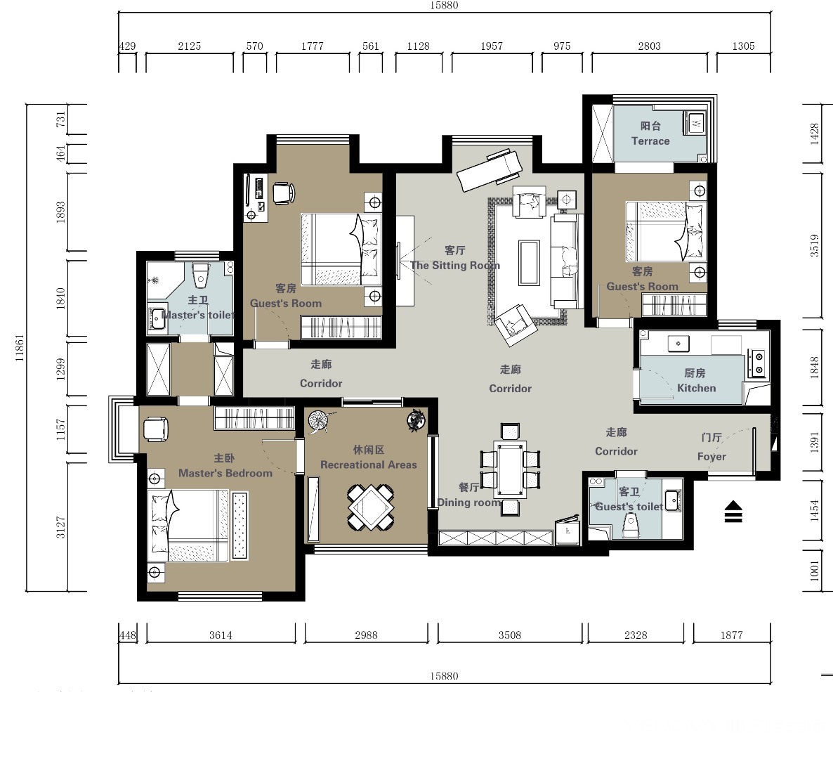 小区:兴庆宫 面积:167㎡ 户型:平层 风格:现代简约风格