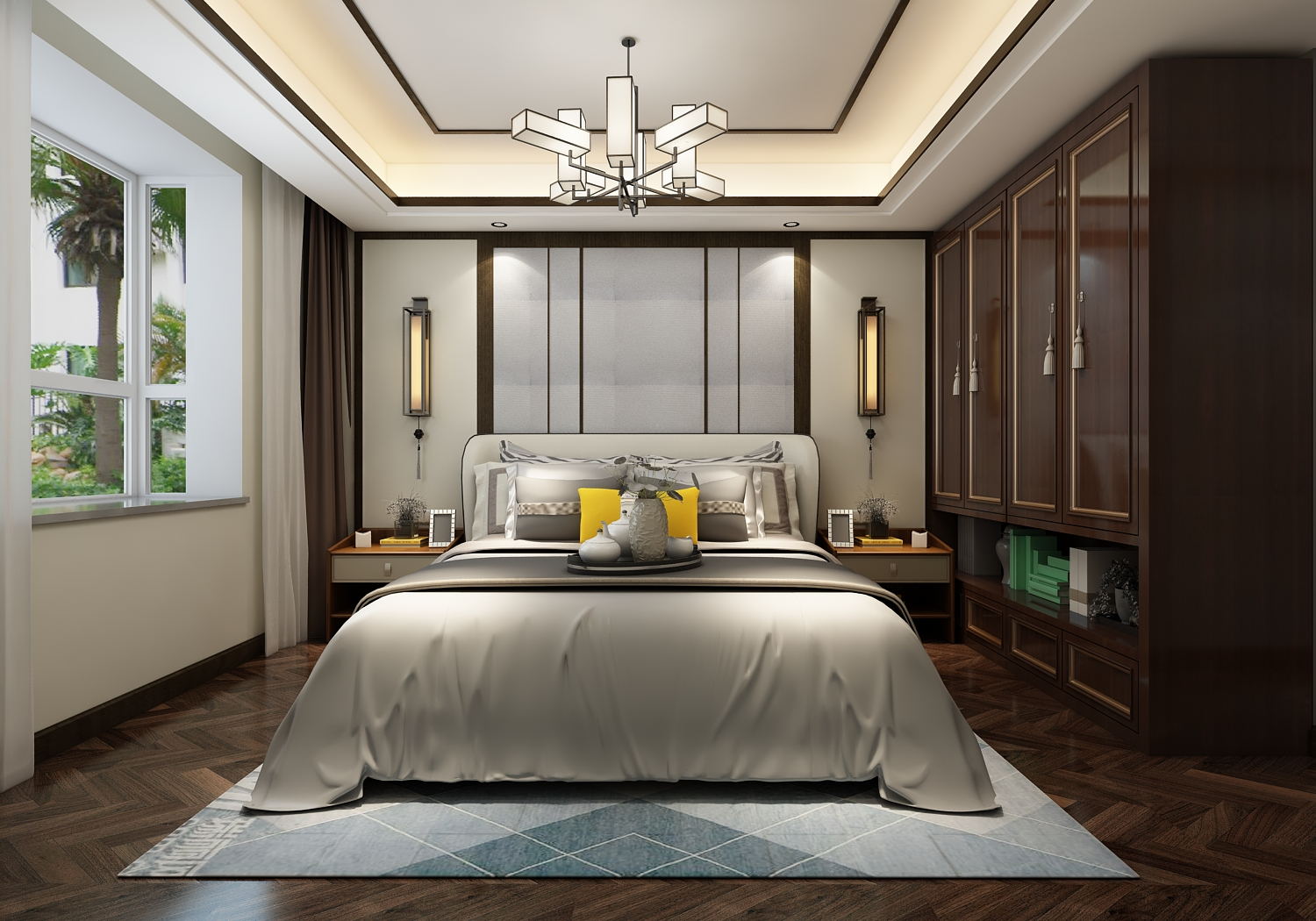 装饰造型:主要采用硬朗简洁的直线条,空间具有层次感。既使得中式家具古典、质朴的内涵显现,又符合现代人追求的时尚感、实用性。
