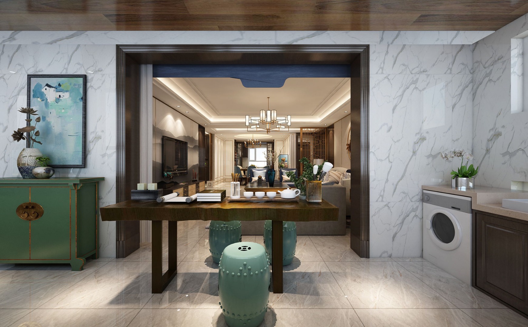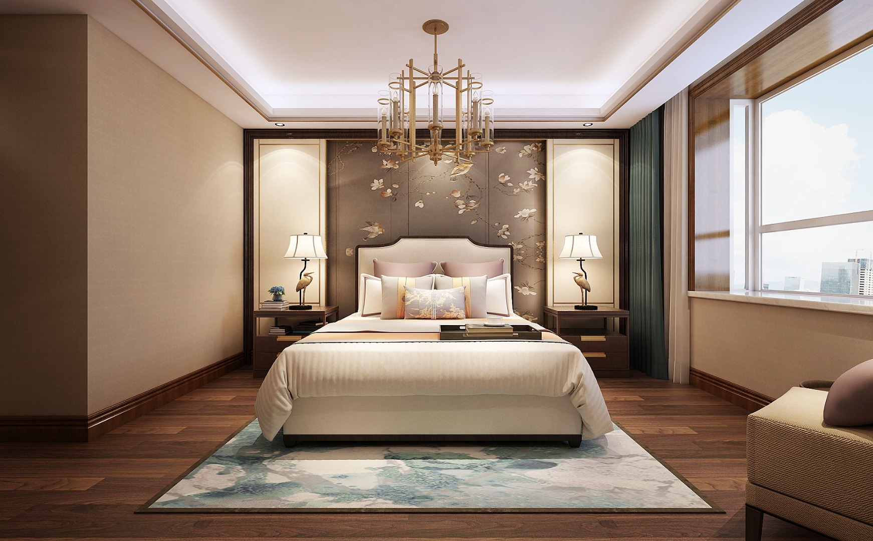 居室在色彩方面秉承了传统古典风格的典雅和华贵,但与之不同的是加入了很多现代元素,呈现着时尚的特征。在配饰的选择方面更为简洁,少了许多奢华的装饰,更加流畅地表达出传统文化中的精髓。为了给居室增添几分暖意,饰以精巧的灯具和雅致的挂画,使整个居室在浓浓古韵中渗透了几许现代气息。