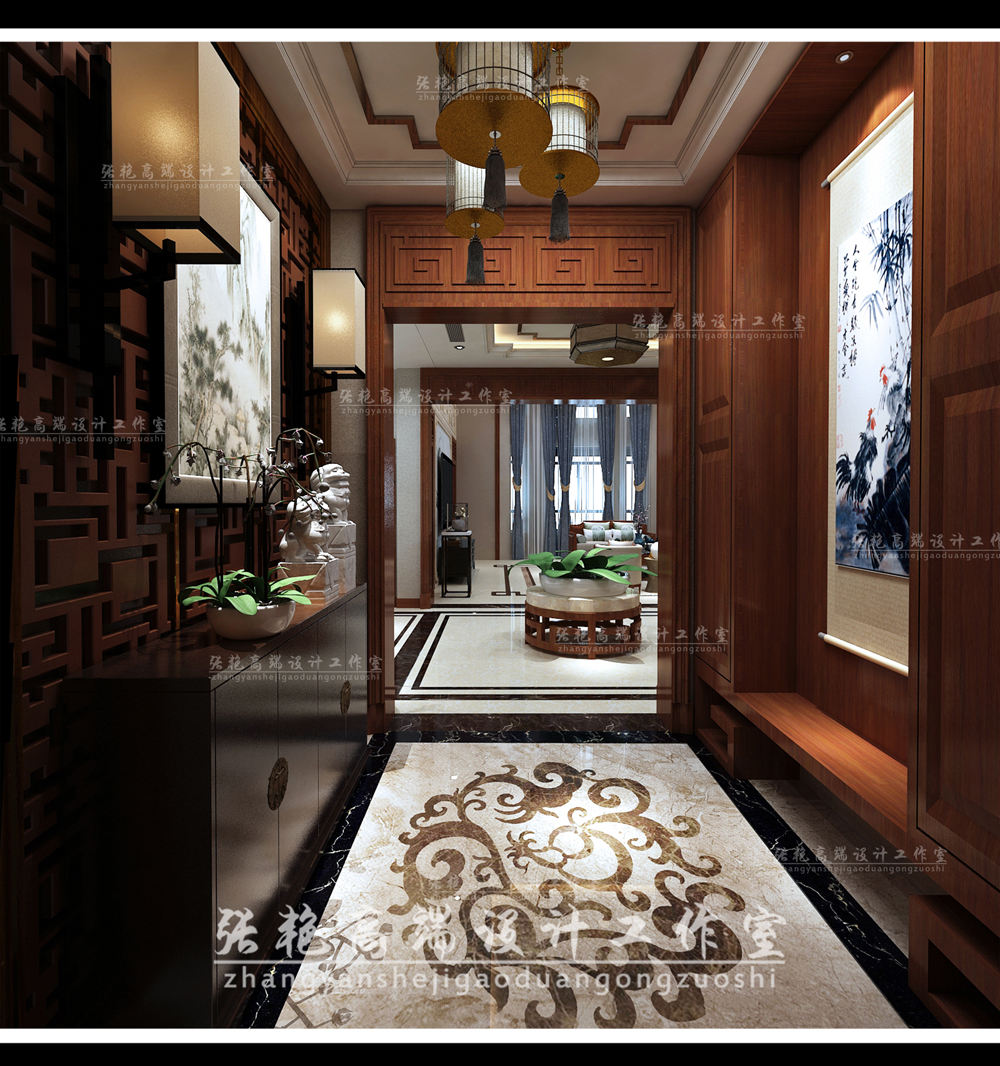 小区:龙山希思庄园 面积:360㎡ 户型:别墅 风格:新中式风格