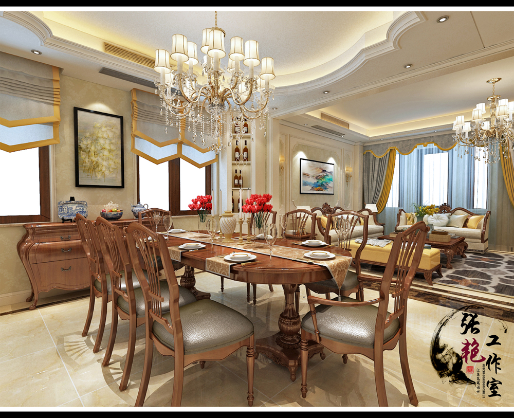 小区:龙山希思庄园 面积:310㎡ 户型:别墅 风格:欧式风格