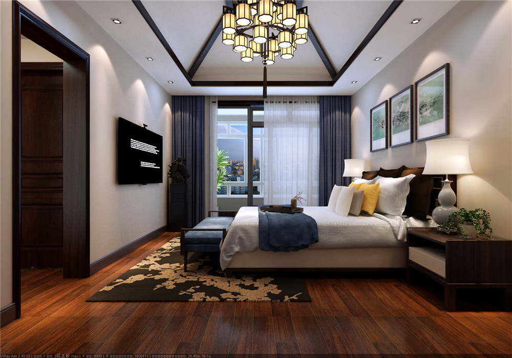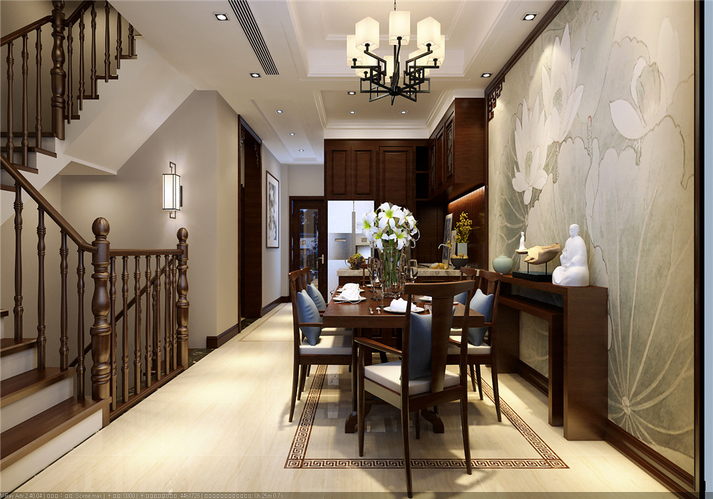 门厅、餐厅、客厅及过道的设计也是考虑到空间的划分以及空间的连续性。既考虑到既能划分空间,又保留各自的独立性,更要空间的连贯性。卧室的设计也是通过应用了壁纸,石膏线等材质,体现了新中式的风格。