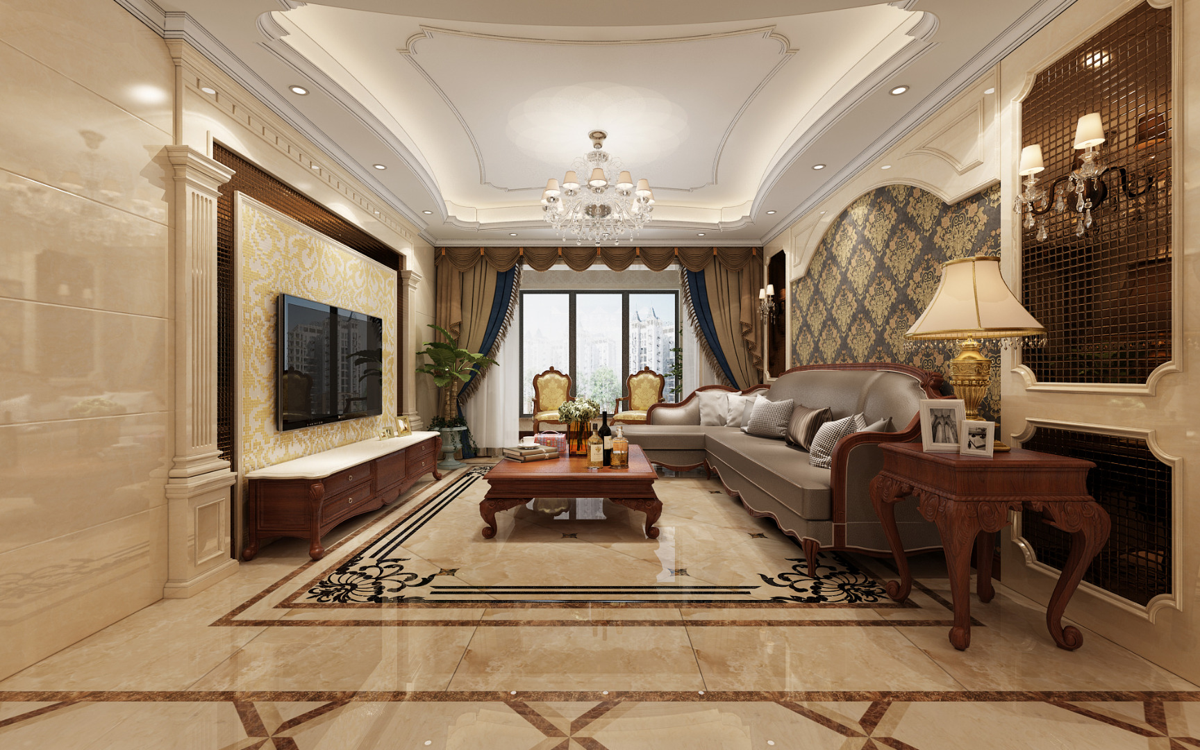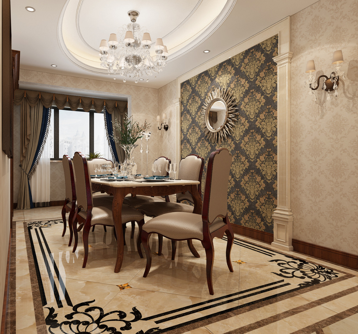 小区:中建国熙台 面积:142㎡ 户型:三居 风格:欧式风格