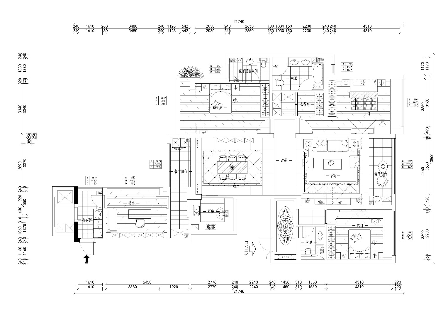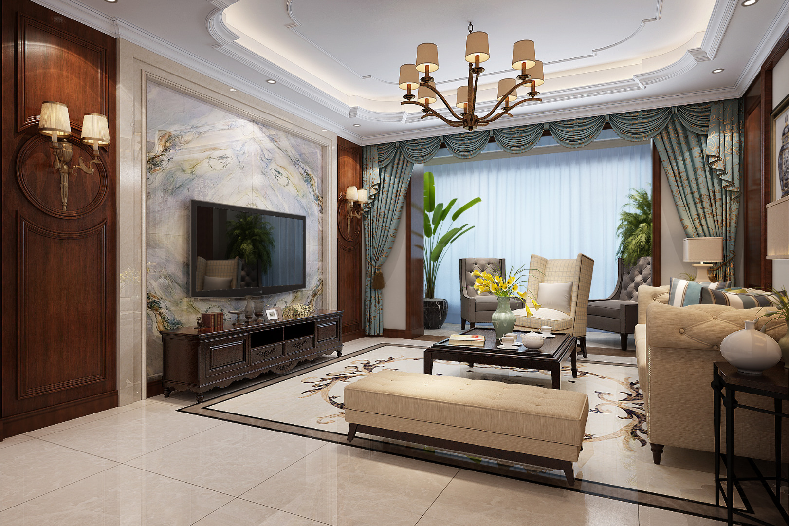 小区:雅居乐御宾府 面积:210㎡ 户型:平层 风格:美式风格