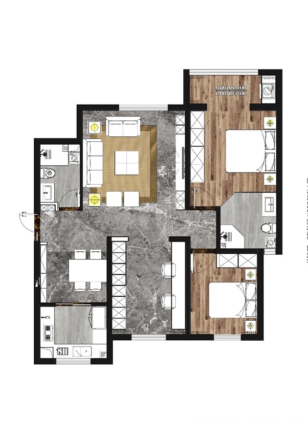 简美的家居白色与深色相互交映,简洁壁纸的点缀能升华整个空间的灵动性户型图