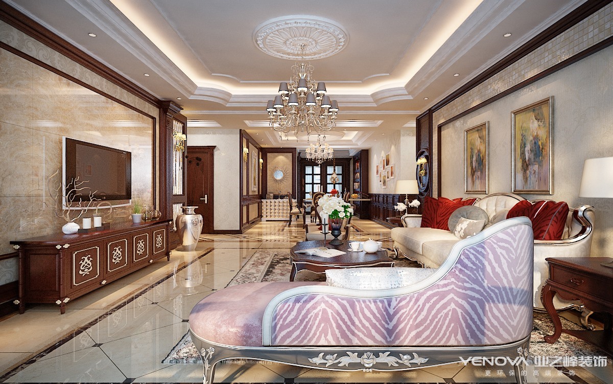 美式风格轻松休闲的家居生活环境,是每一个热爱生活,对家居生活高品质的追求的人共同向往。美式的细腻,自由,无论是散发复古怀旧时代还是前卫的现代感。从设计上注入几分情愫,融入自然般色调与舒适感原始基调。人性化气息但不会过于束缚于怀旧情结,饱含细化理念,创新精神以及可变化的强调。 客厅与餐厅之间设计,使得空间妙趣横生,审美形态一目了然,以一种简洁的方式呈现了光线,以及客餐厅的互动。