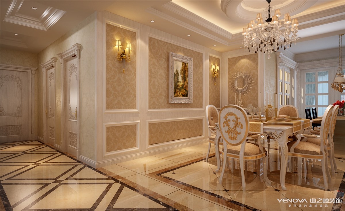 欧式风格家居装修装饰装潢设计理念独特,欧式风格线角变化丰富,家具及灯饰都略显欧式特色并有一定的文化氛围。现代欧式的居室有的不只是豪华大气,更多的是惬意和浪漫。通过完美的曲线,精益求精的细节处理,带给家人不尽的舒服触感,实际上和谐是欧式风格的最高境界。与此同时,本案配搭了暖色的灯光,打破了传统布局沉闷的格调,使得空间的层次感、穿透性大大增强。后期软装方面,选用的配搭灯具、家具等也很考究,既有西式元素,又具有强烈的时代感元素。例如天花水晶灯的闪烁效果,配搭上欧式家具、水晶灯、壁灯、挂画、饰品等完美组合,形成极具品位的装饰效果,将奢华的欧式风情演绎得淋漓尽致。