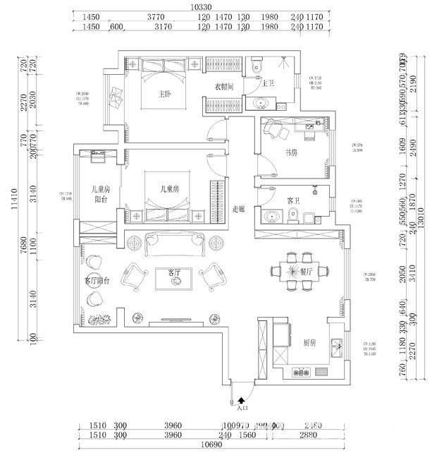 小区:保利拉菲 面积:148㎡ 户型:三居 风格:美式风格