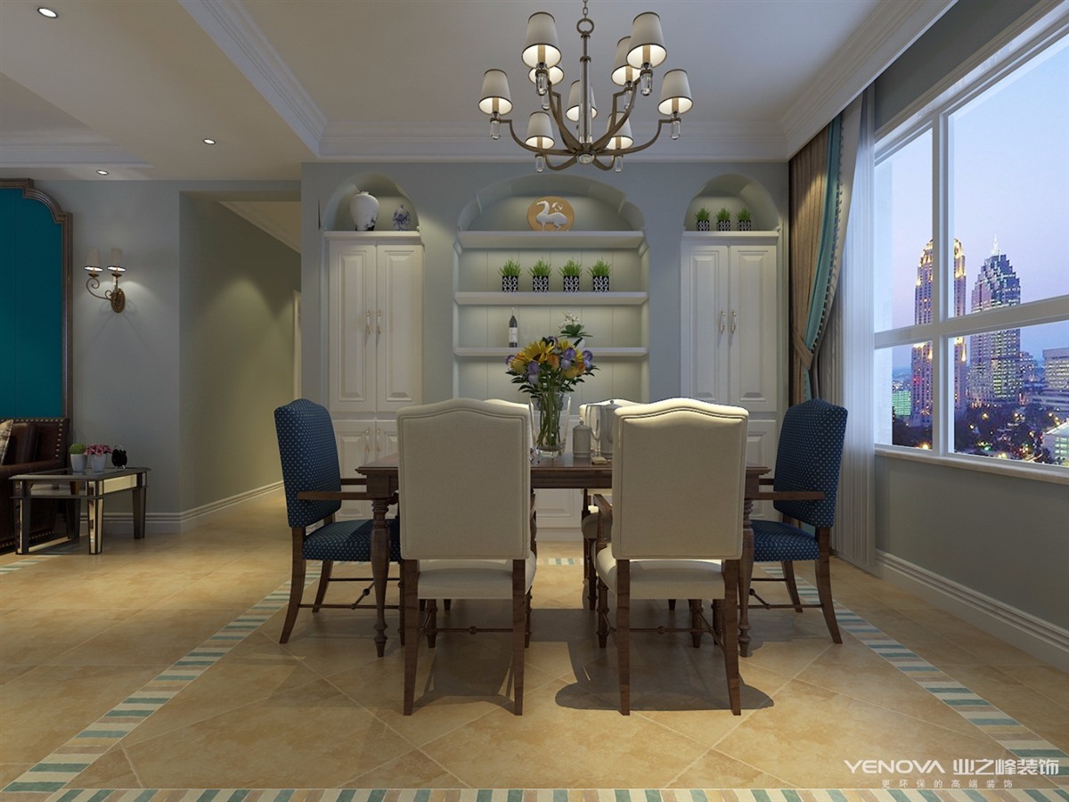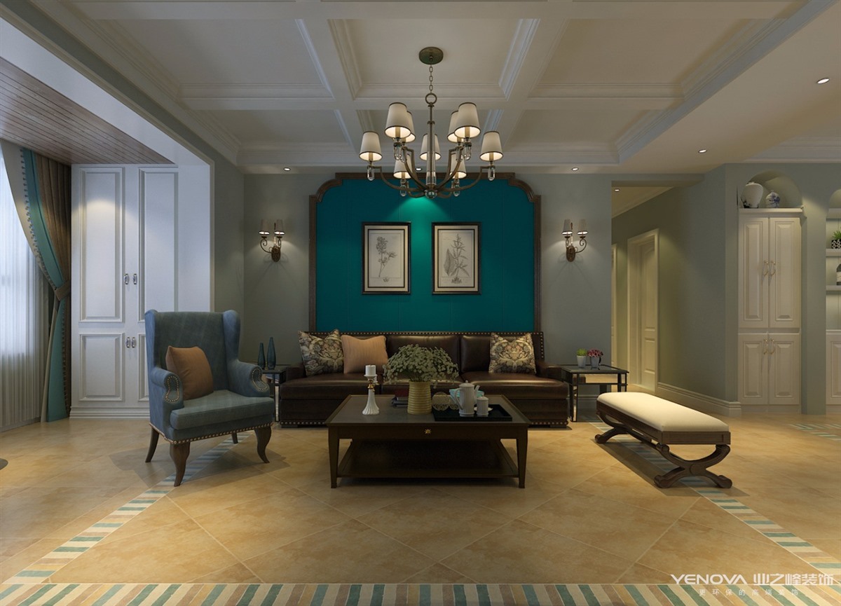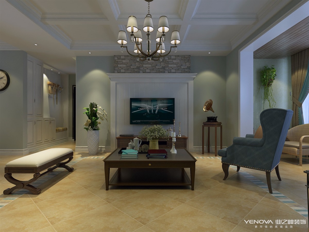风格定义为美式田园风格,没有欧式的繁复,也不像现代的简单,却也彰显着线条交错的美感,本案大面积运用灰蓝色调,软装饰铸就主体风格,随意摆放的配饰,精美吊灯等,营造出闲适随意、舒适优雅的美式田园风格。